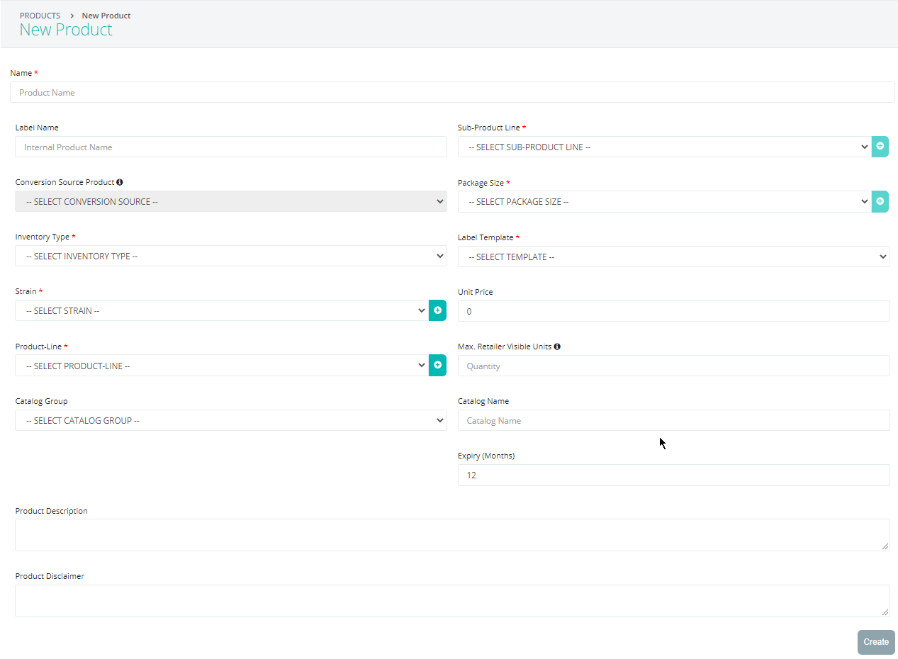 Most of your products will have already been created by our team (or synced down from your state traceability system) during the onboarding process.