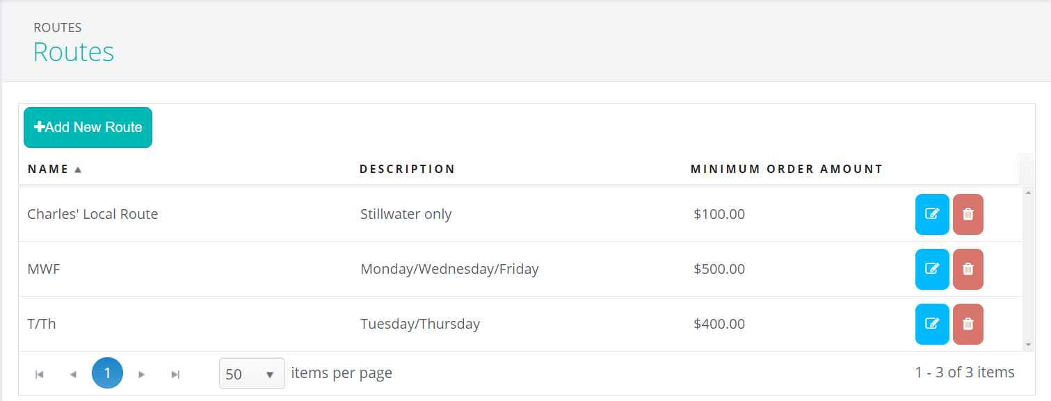 Routes are the names of courses your delivery drivers take to fulfill orders to your clients. They can be based on territories, days of the week, or however you’d like to define them.