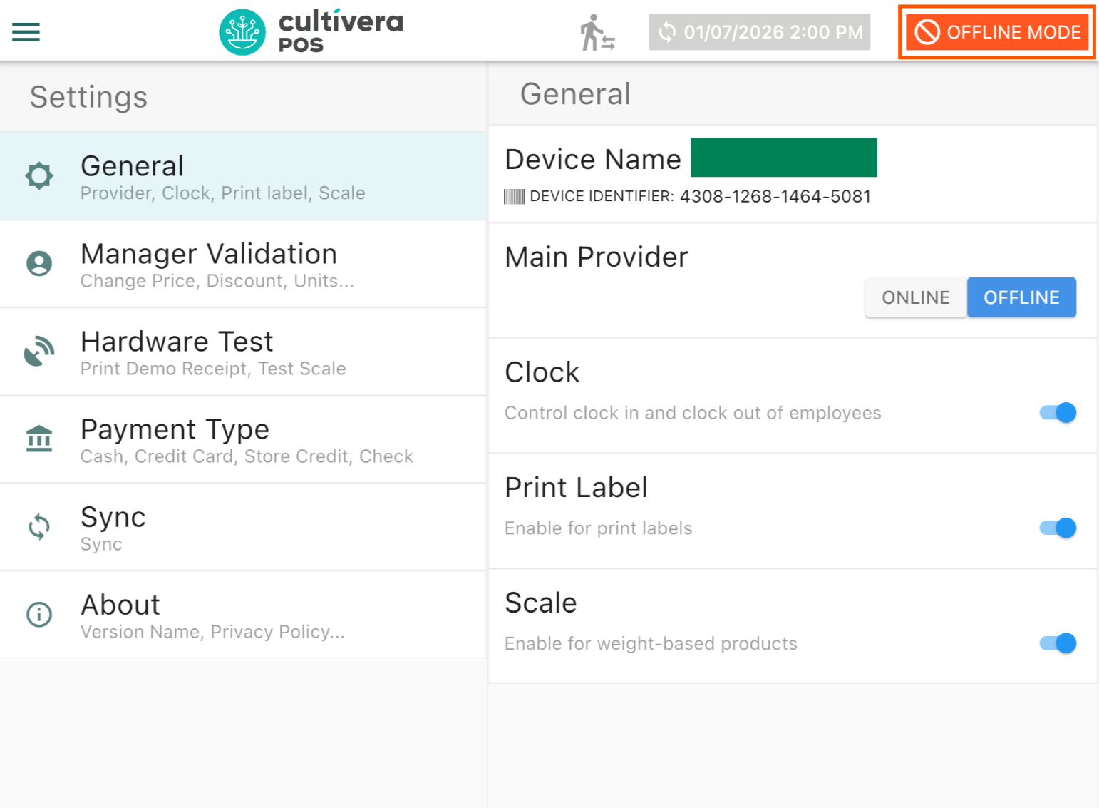 - Navigate back to Settings within the Cultivera POS app.