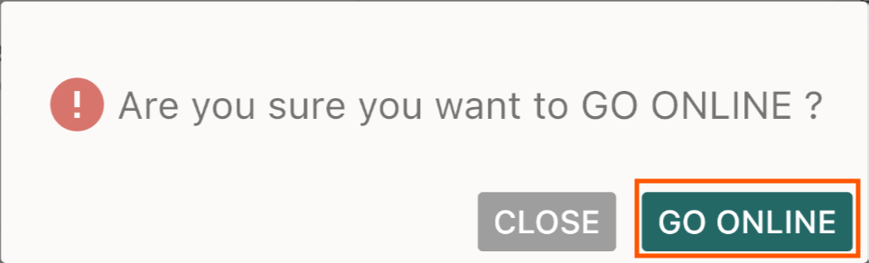 - Confirm by selecting Go Online.