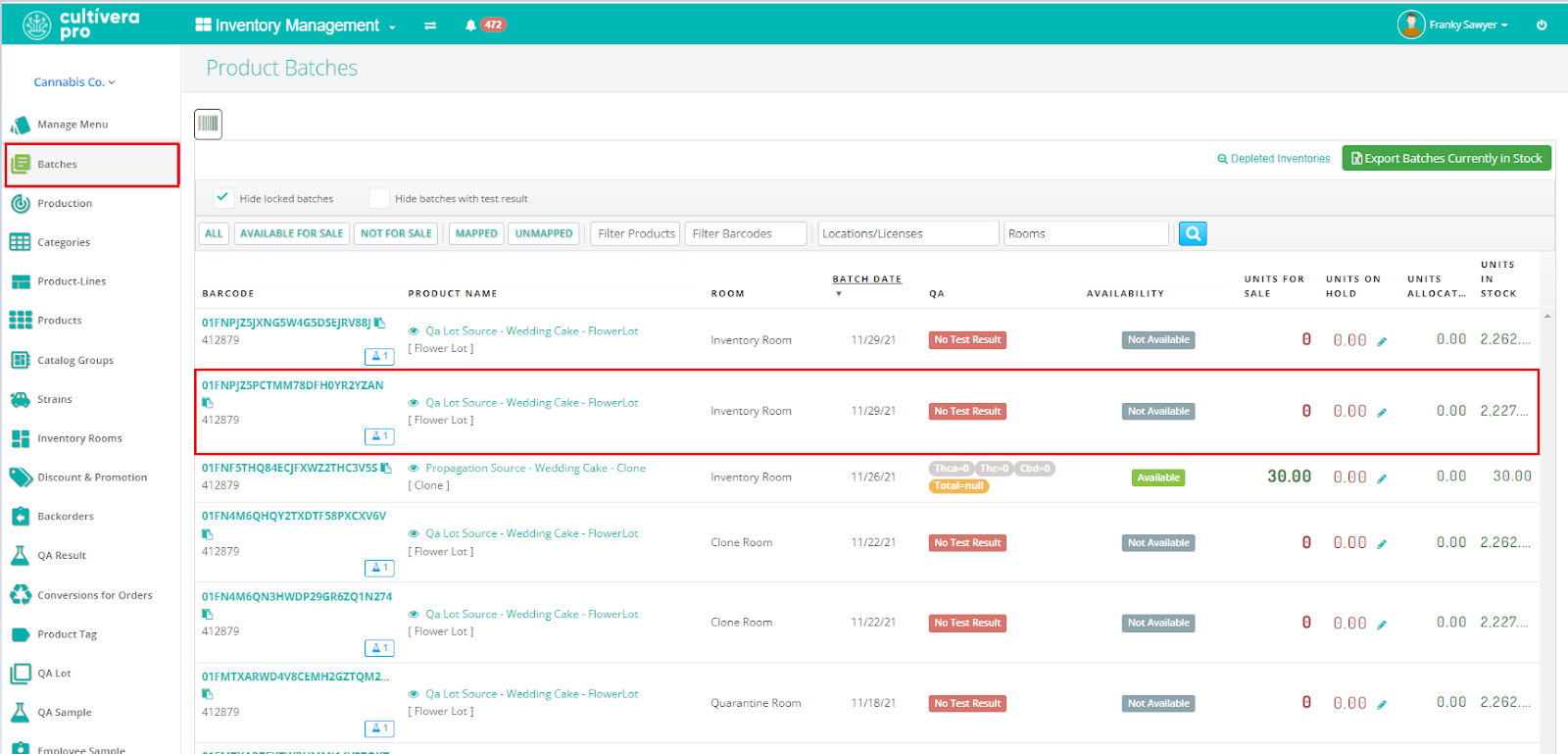 - Navigate to Inventory Management > Batches