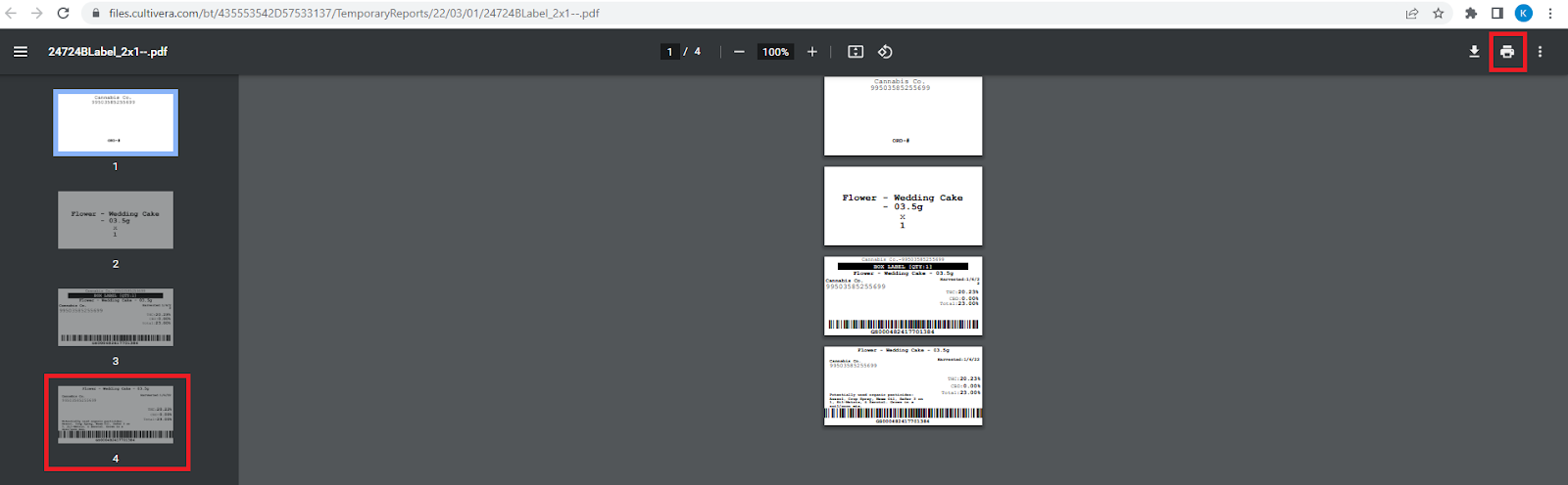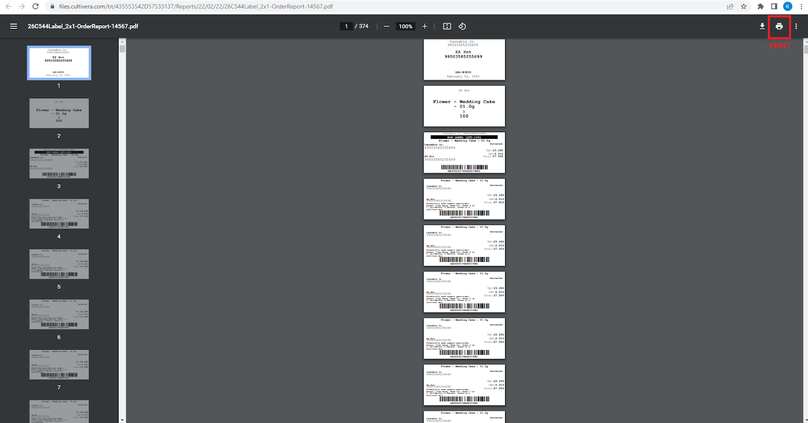- Here you can Print your Labels by clicking on the print icon at the top: