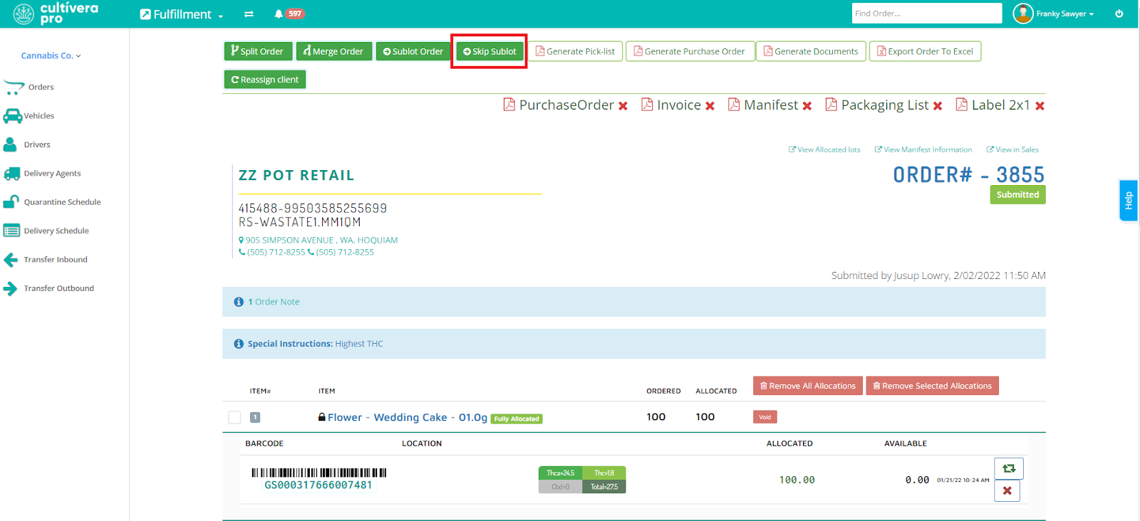 You can follow these steps to print Product labels for any Orders that have already been “Sublotted” or are past the “Sublotted” stage of Fulfillment.