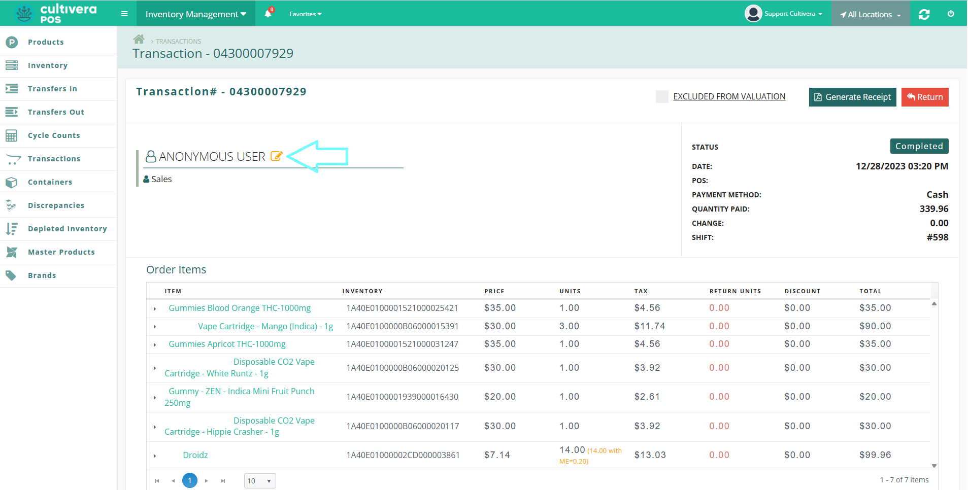 POS - Back Office: Assigning a Missing Patient to a Completed Transaction and Re-Reporting to METRC