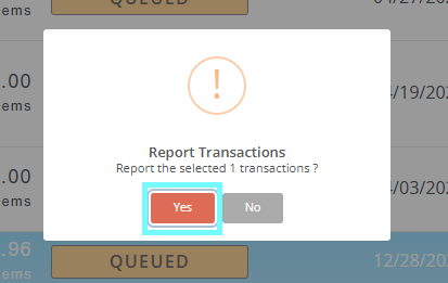 - Click on the transaction to highlight it in blue, and then select the yellow "Report Selected" button at the top of the page.