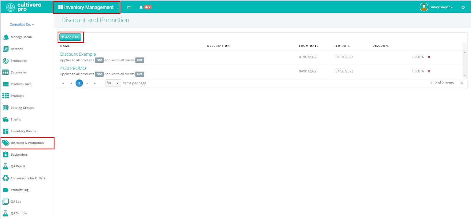 - Navigate to Inventory Management > Discounts & Promotions.
