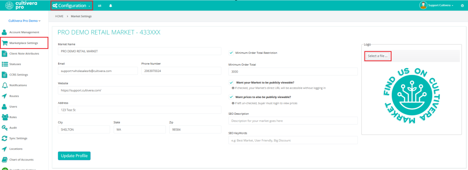 Use this guide to update your Market Logo and/or Document Logo (such as PO or Invoice).