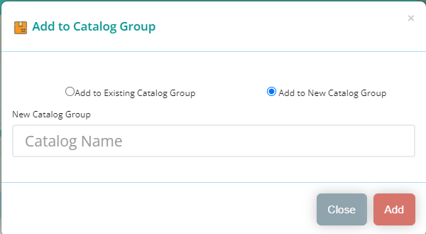 In the following dialog box you will be able to “Add to Existing Catalog Group” or “Add to New Catalog Group”.