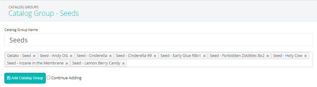 - You can use the “Continue Adding” checkbox to add more selections to the Catalog Group.