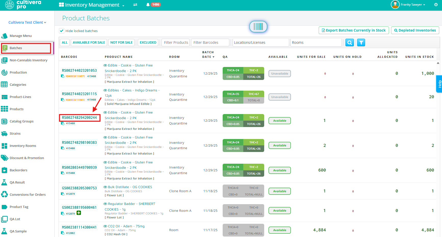 - Navigate to Inventory Management > Batches and locate the child batch you want to return.