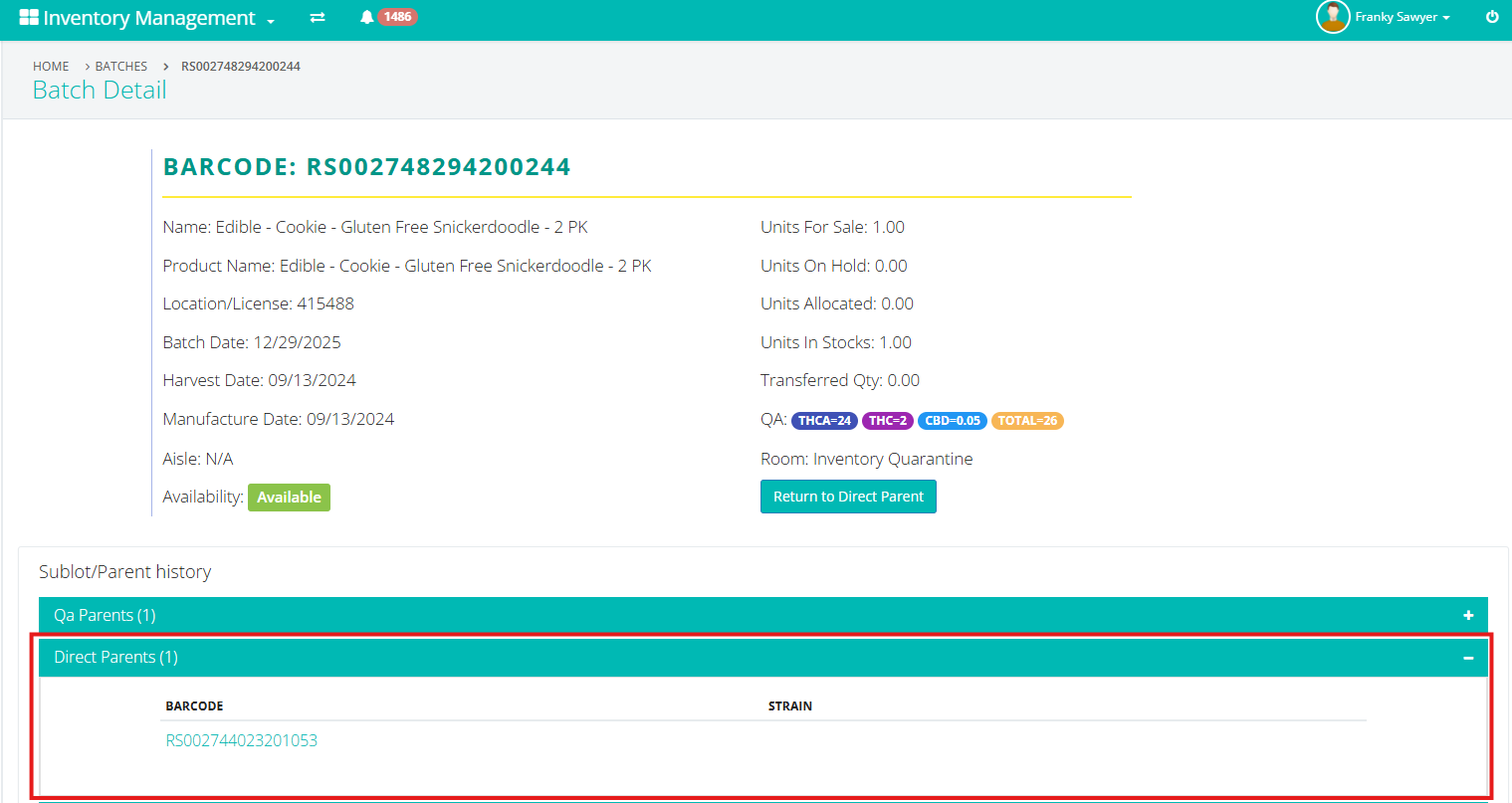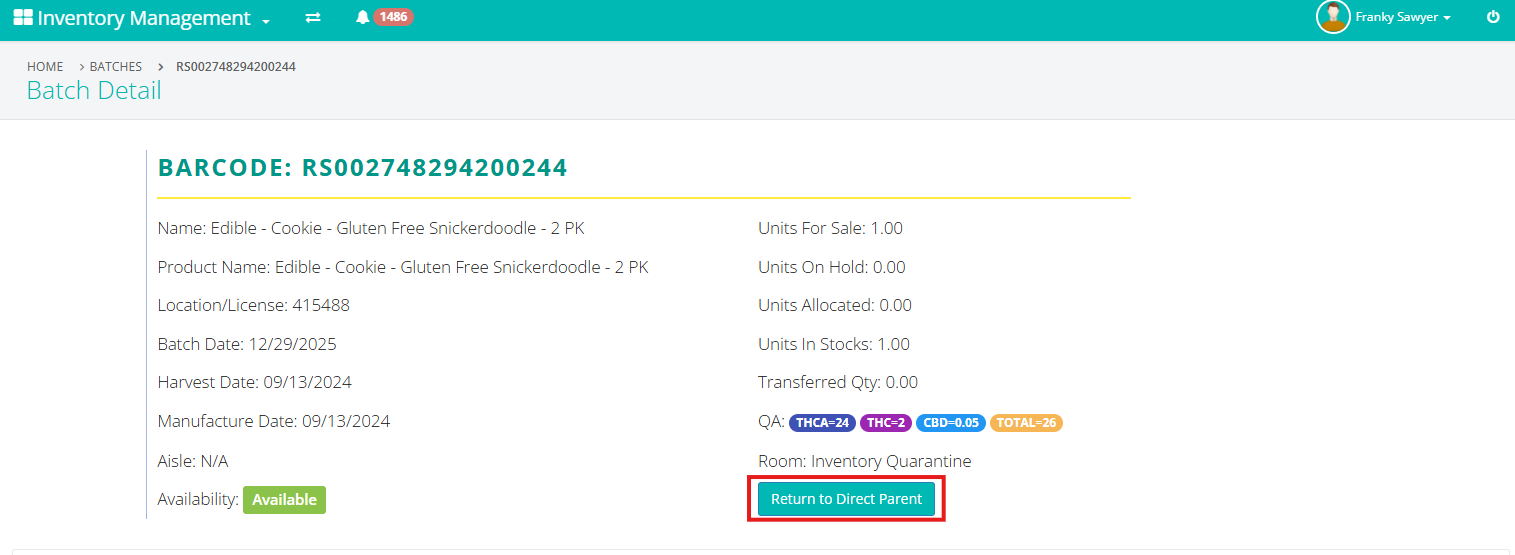 This article explains how to return inventory to its direct parent in Inventory Management > Batches and what to expect once the action is complete.