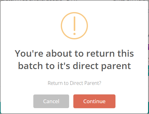 At times you may create child batches, sublots, or conversion batches for processing or to fulfill an order. If any batches are canceled, changed, or created in error, you can return the inventory back to its direct parent batch.