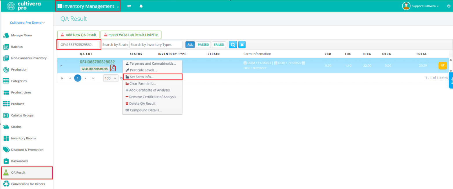 You will now see an 'Expiration Date:' above the QA Result details on the Inventory Management > Batches page.
