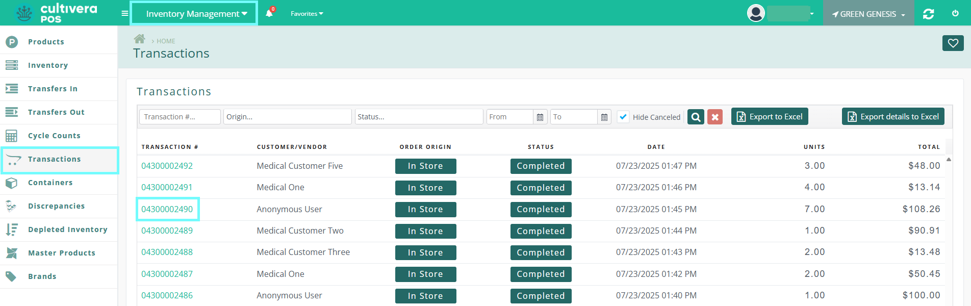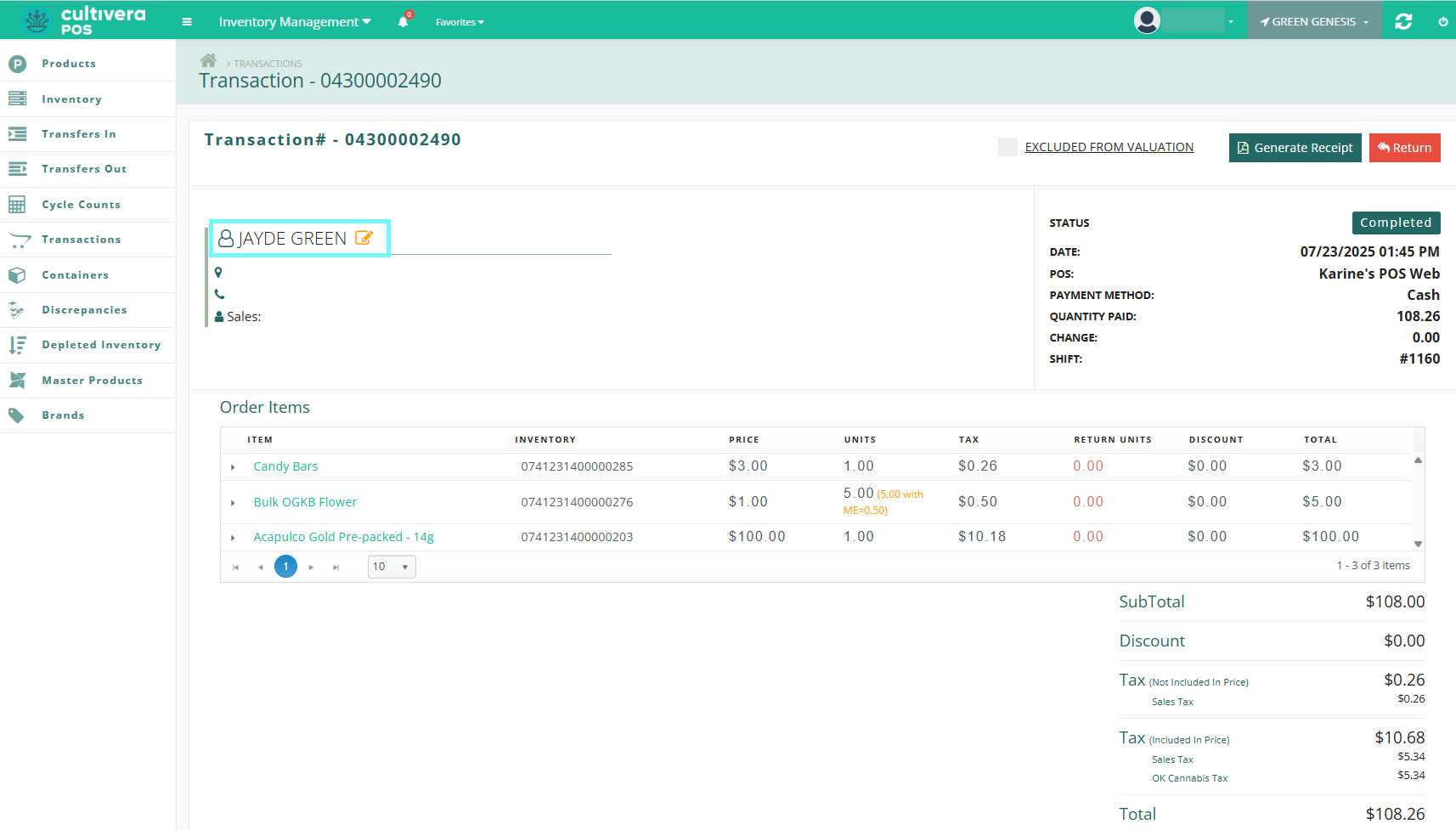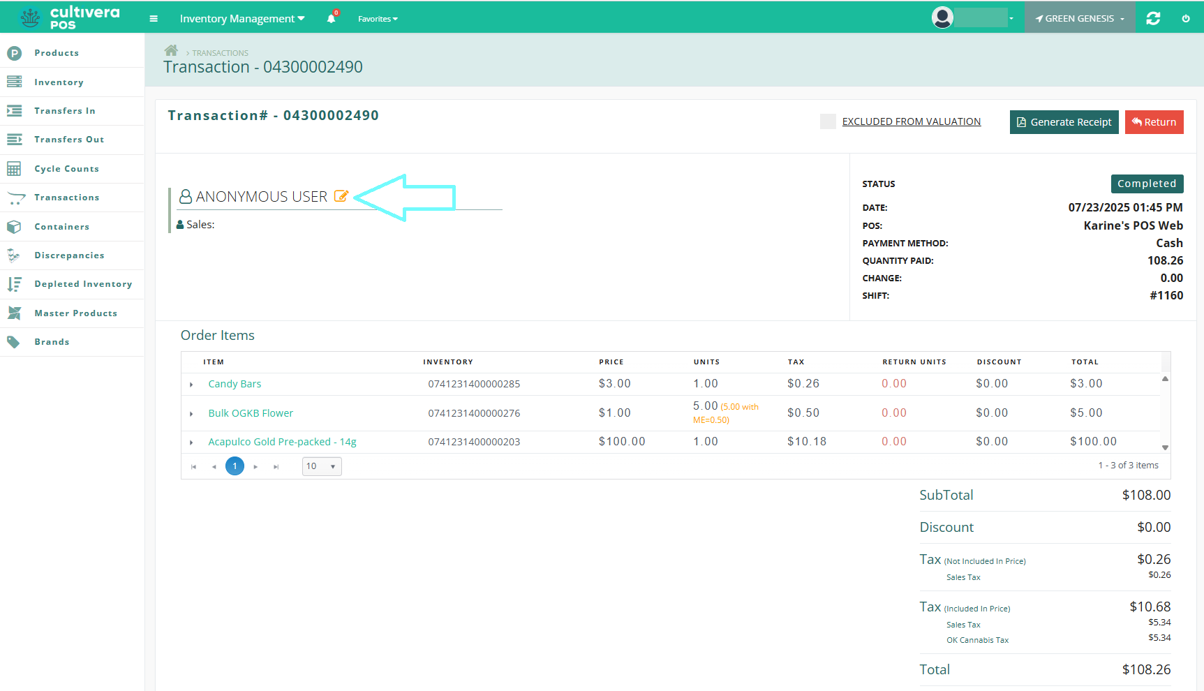 Should a customer need to be added or modified on a transaction that has already been completed, you may do so within the Cultivera Back Office.