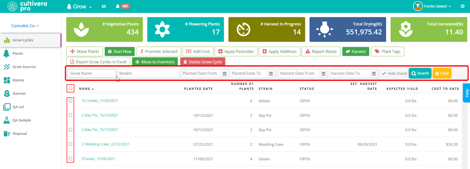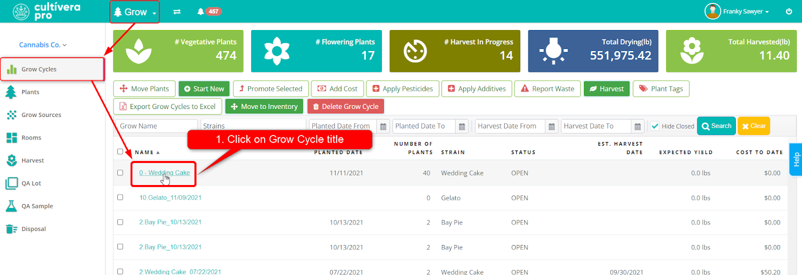 - Navigate to Grow > Grow Cycles page.