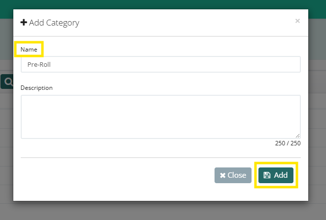- Enter the Name of the Category (Description is optional), and then select "Save".