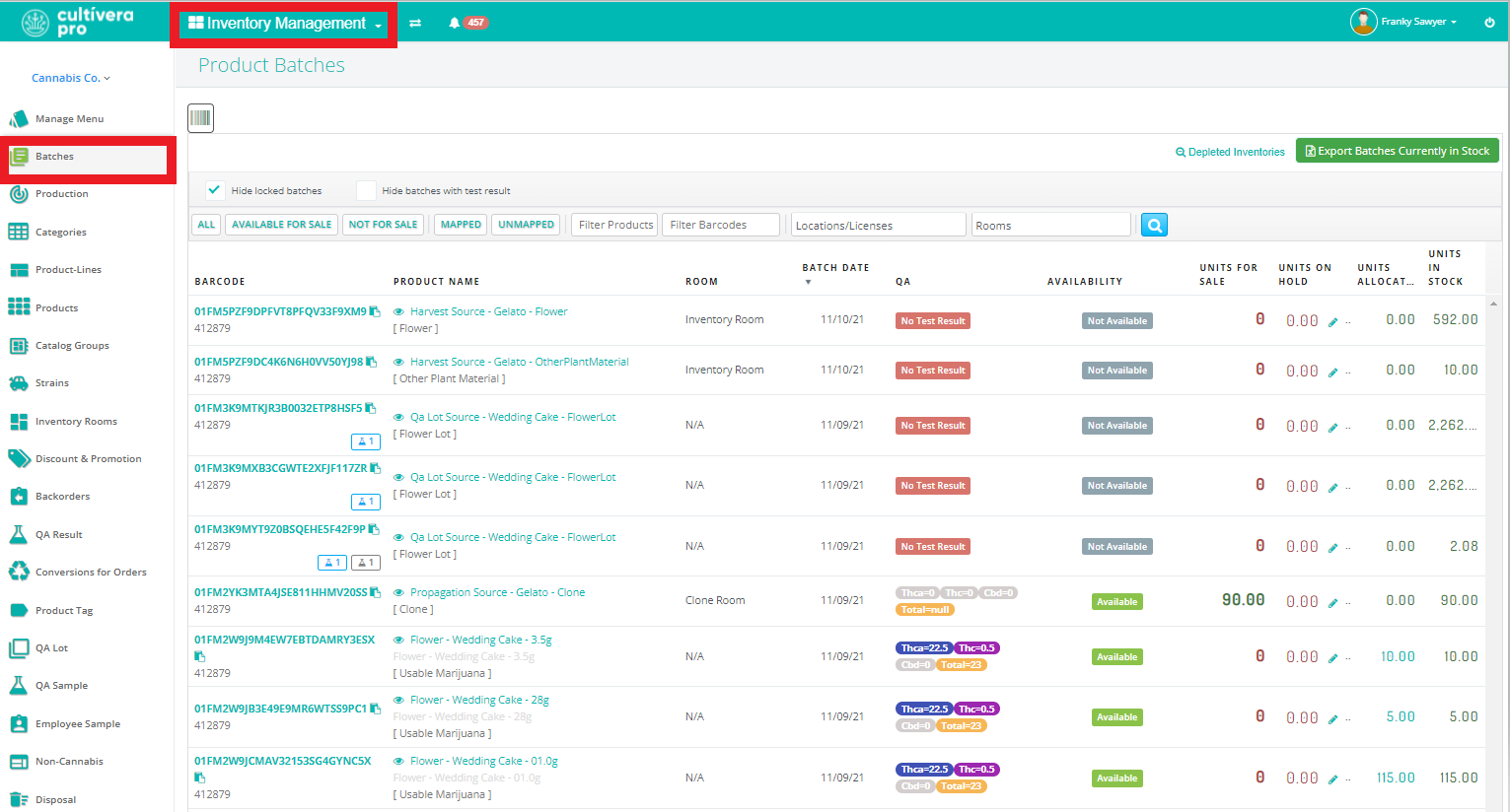 - Navigate to Inventory Management > Batches.