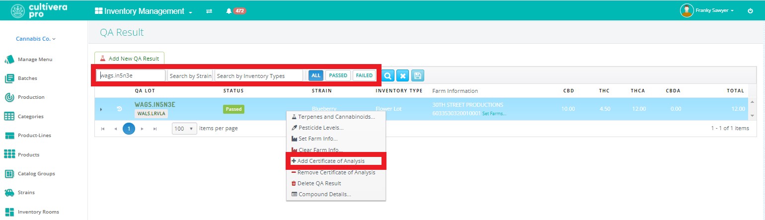 PRO: Inventory Management - Uploading Lab Test Results (COAs)