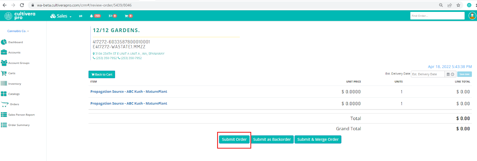- Then Submit as a new Order, which should auto-allocate all of the Plants to each line item as needed. You can then navigate to Fulfillment > Order Detail and complete the order fulfillment process: