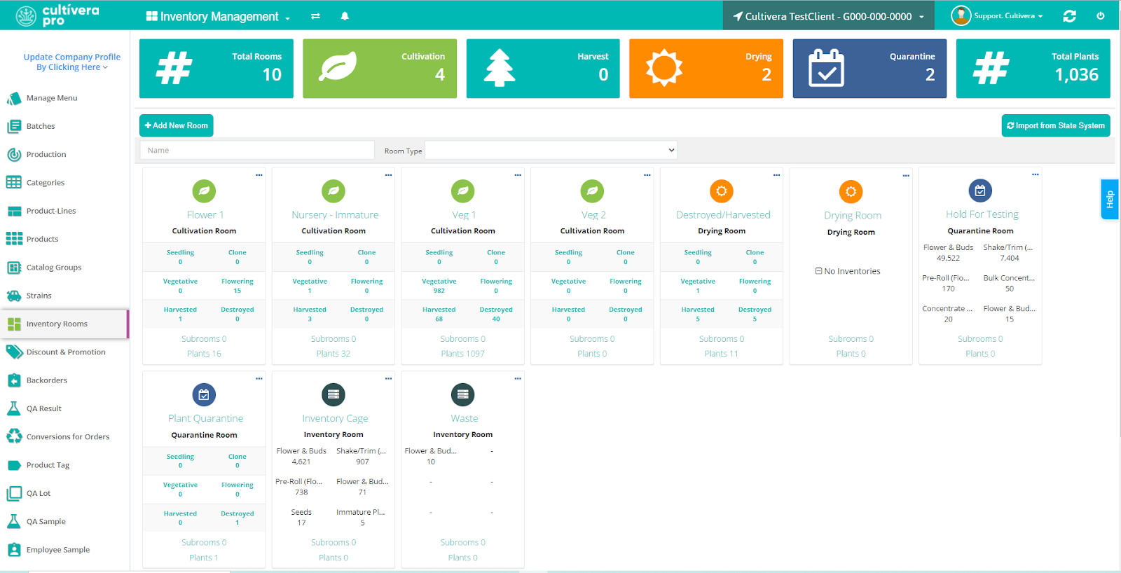 Inventory Rooms represent the physical locations where inventory is stored, as opposed to Plant rooms, which contain living plants. Every Batch in the system should have a room assignment for inventory tracking purposes.