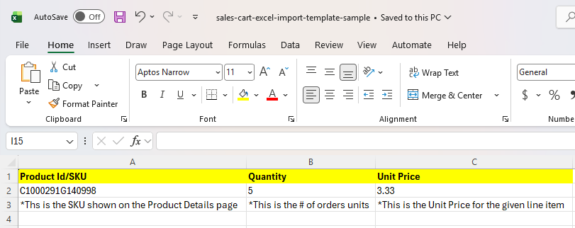 Click here to download an example of the "Import Cart" sheet.