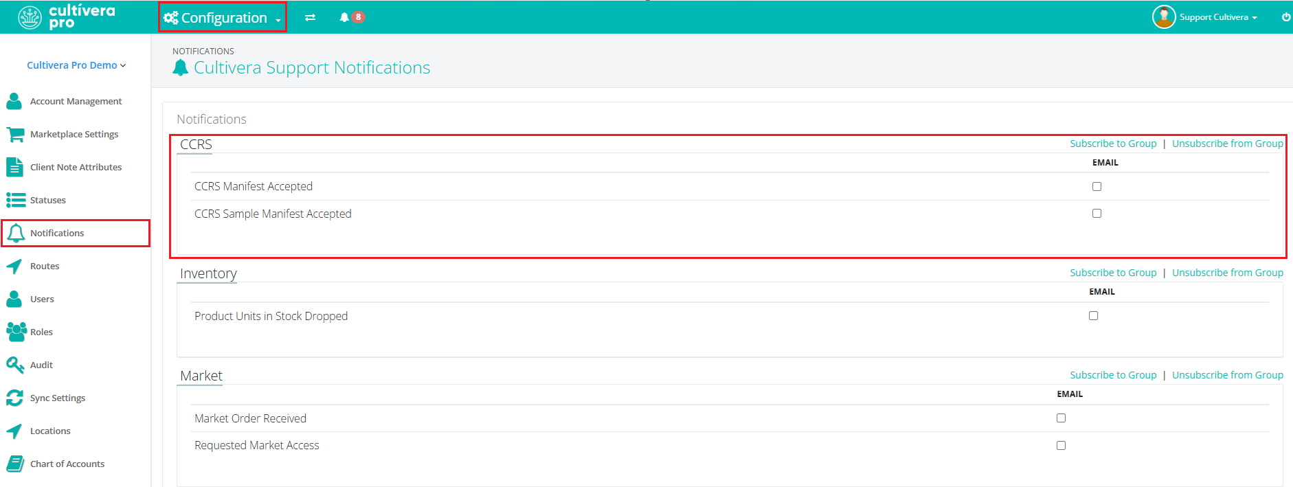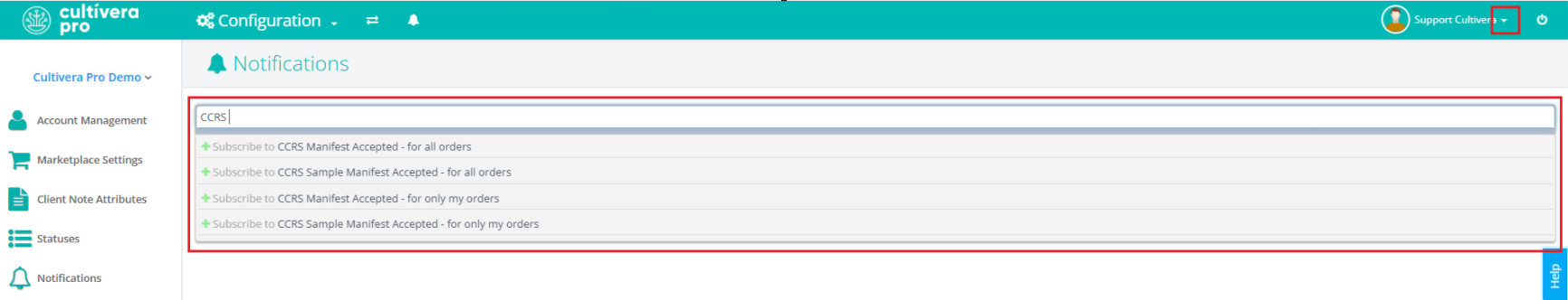 You can now subscribe to Email or In-App notifications that will notify you when the Official CCRS Manifest has been generated on the Fulfillment > Order Details page in Cultivera.