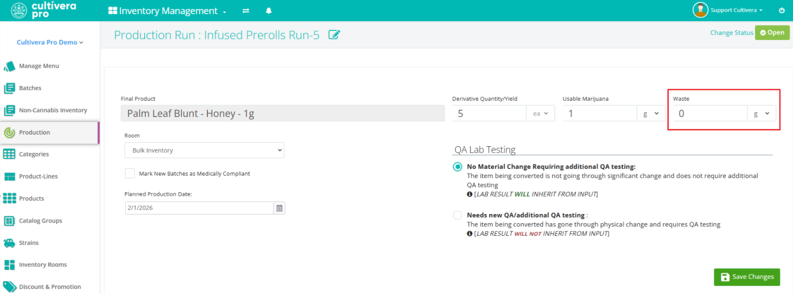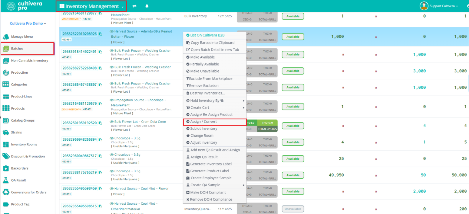 We do not recommend using the 'Assign/Convert' feature when converting from a bulk inventory type to an end-product in your system (such as bulk flower lot > usable marijuana).