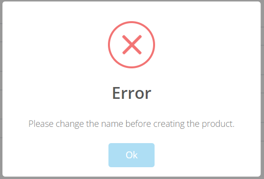 New Product Error:Please change the name before creating the product.Resolution: This indicates that there is another product in your system with that same name. You can check your "Discontinued" products to confirm if that product already exists, and simply "Resume" it from the product details page if it does. Or, you can create a new Product with a slightly different Product Name.