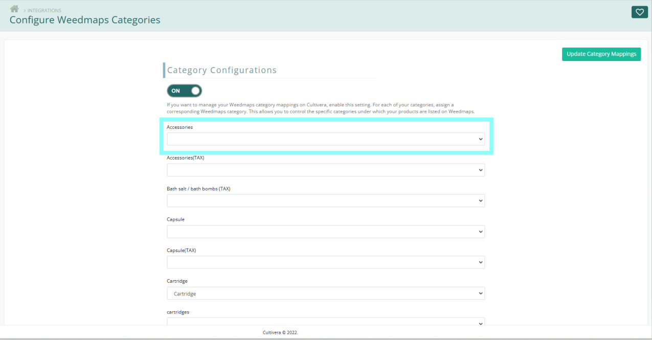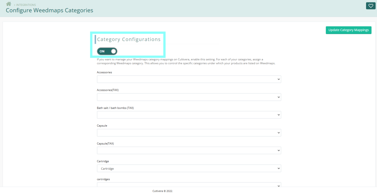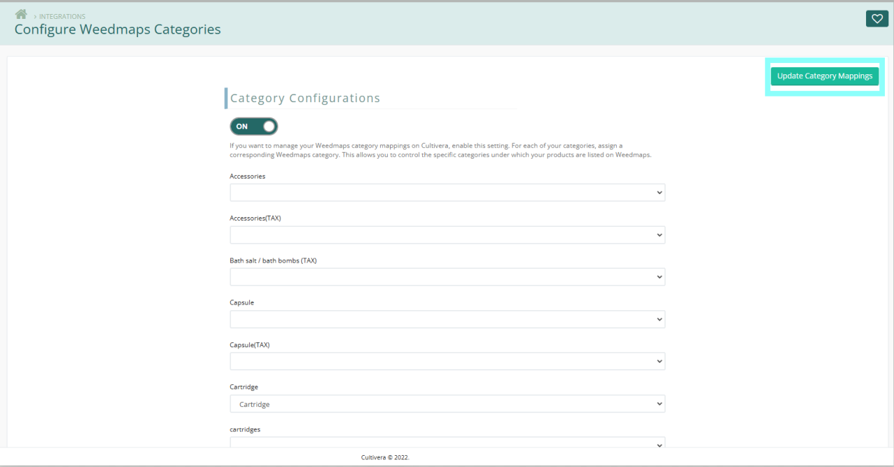 - Configure each category as you would like them to reflect on your Weedmaps Online Menu.