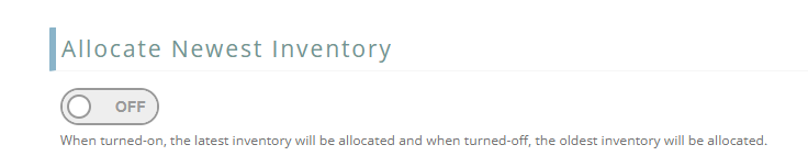 The Allocate Newest Inventory toggle will allow for an automatic FIFO (First In / First Out) of oldest inventory when fulfilling online orders. This will only occur if the Auto Allocate Inventory toggle is ON, and will be based on the preference desired.