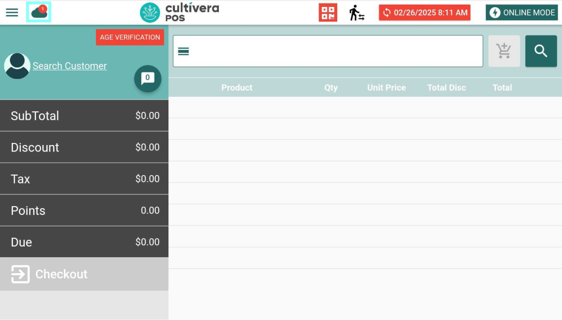 The cloud icon in the upper-left hand corner of the iPad and Android app can be selected to quickly navigate to the pending orders page. A counter will display the number of pending orders remaining.